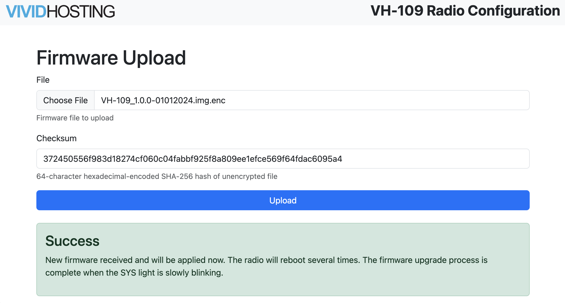 Enter the checksum located on the [firmware release](https://frc-radio.vivid-hosting.net/overview/firmware-releases) page for the corresponding version you're upgrading to.&#x20;