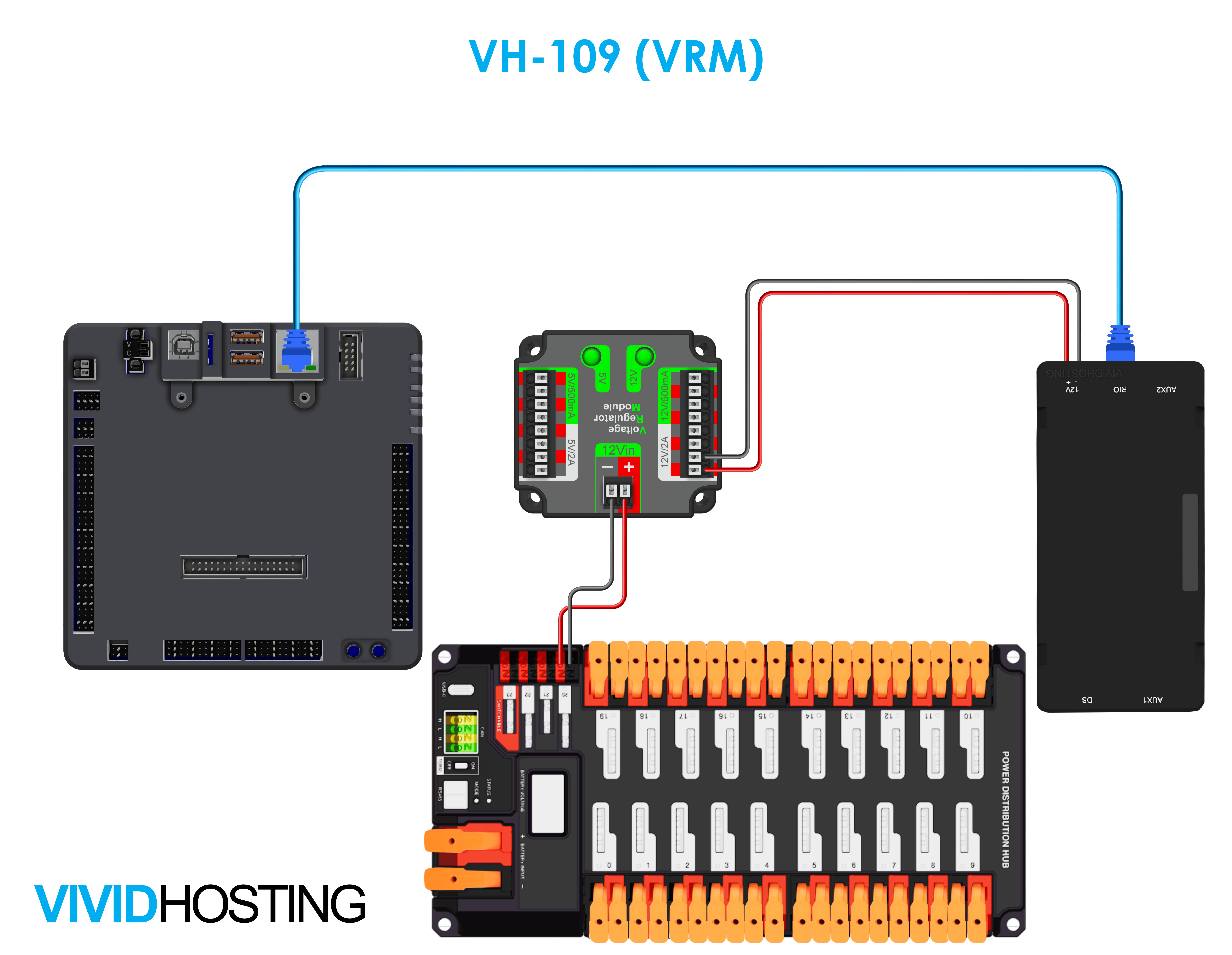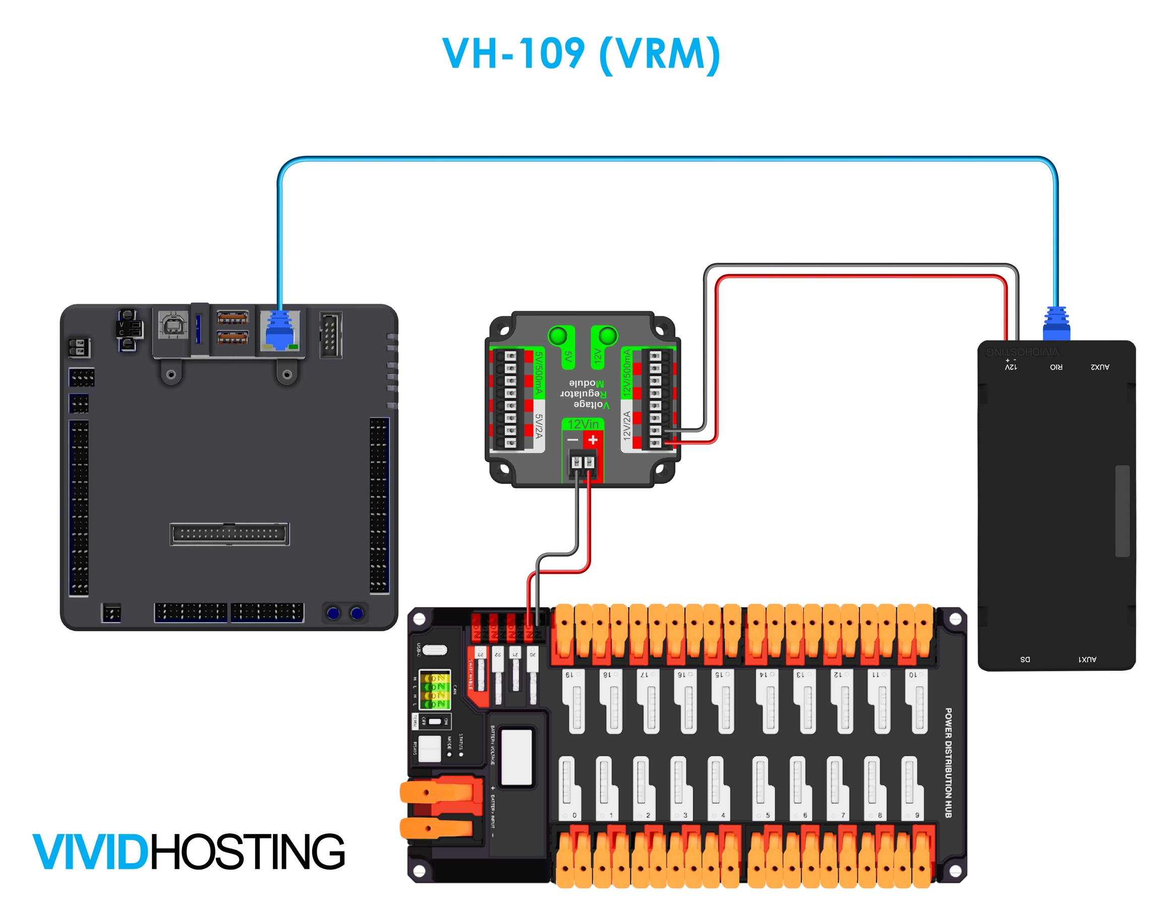 VH-109 radyo 19VDC'ye kadar işleyebilirken, bu kablolama yöntemi Rev Robotics Radyo Güç Modülüne zarar verecektir.