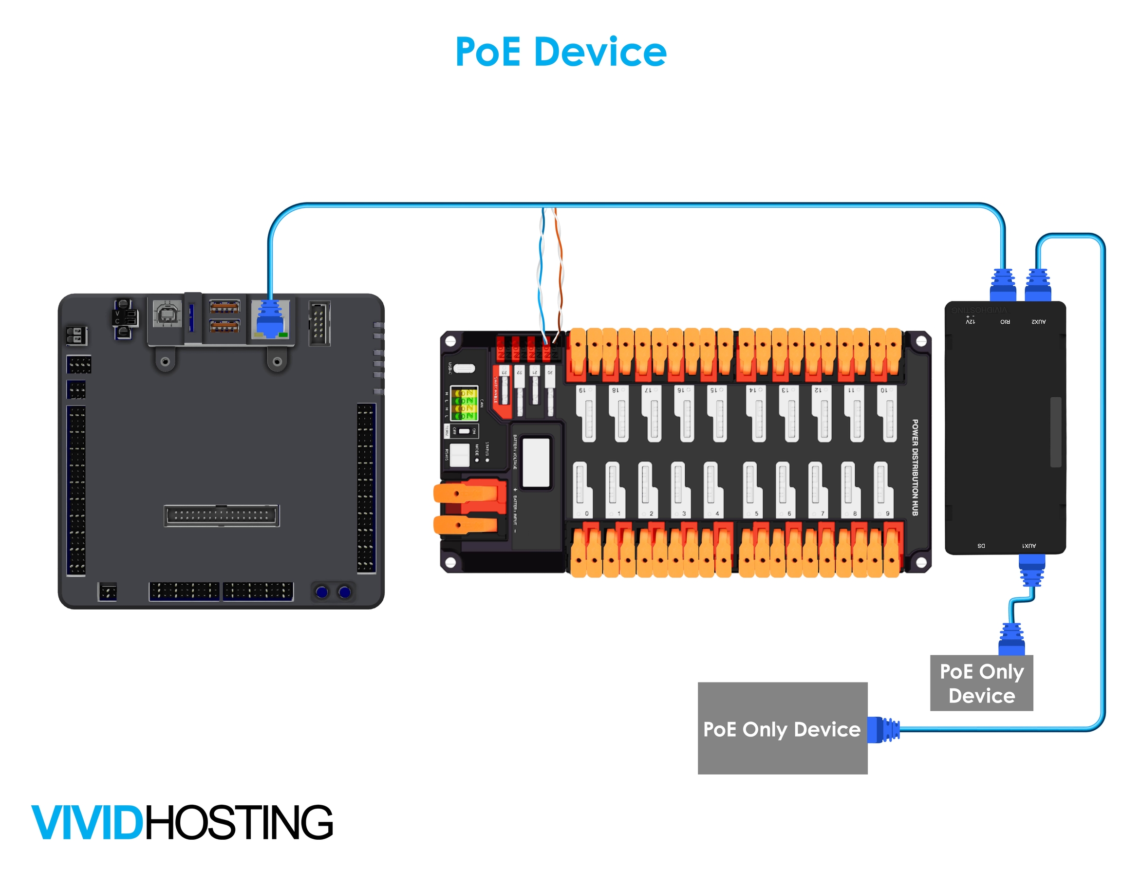 VH-109 radyo, AUX1 ve AUX2 olarak etiketlenmiş iki bağlantı noktasına POE geçişi sağlar. Bu bağlantı noktaları enerjili DC pinlerine sahip olacak şekilde yapılandırılabileceğinden ve Pasif POE enjeksiyonu için tasarlanmamışsa bazı cihazlar zarar görebileceğinden onları kullanırken lütfen dikkatli olun.